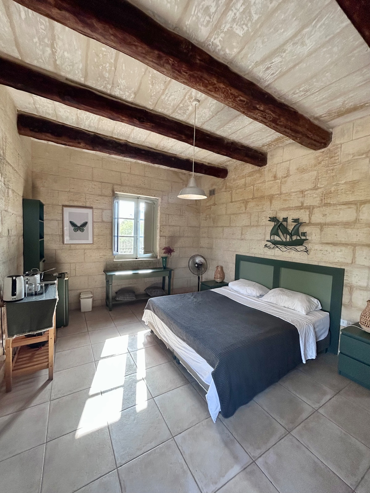 A bright and spacious artist's residence and retreat with breathtaking views. This highly maintained property is only a 15mins walk to friendly restaurants in the village of Xaghra and Ramla beach. Situated between the Neolithic Ġgantija temples and legendary Calypso's cave. With a well serviced bus route and local grocery shop at the end of the road (5min walk). Dar il Paci is an easy, comfortable and centrally located base for adventures on Gozo or relaxing with family and friends by the pool.