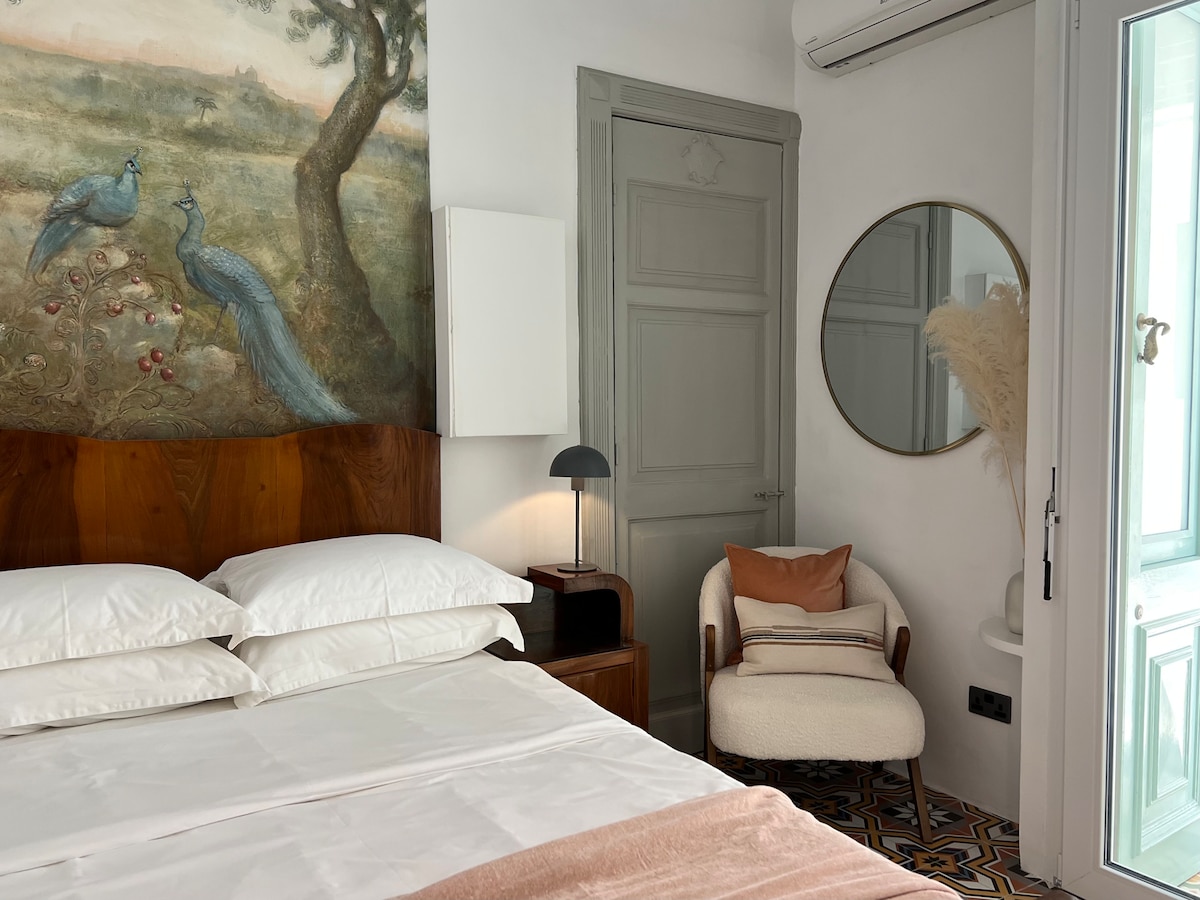 Soak up the vintage charm of this fully renovated historic landmark townhouse. Eclectic details include fishermen's net lamps, original artwork, plenty of natural light and an outdoor balcony with orginal wrought iron railing. The Marina Suite is our most spacious room within the Birgu Blue Townhouse. Centrally located in a semi-pedestrian street in Birgu, you can tour the whole island and stay in a truly authentic house setting. Please note that there is NO AC IN THE BNB.