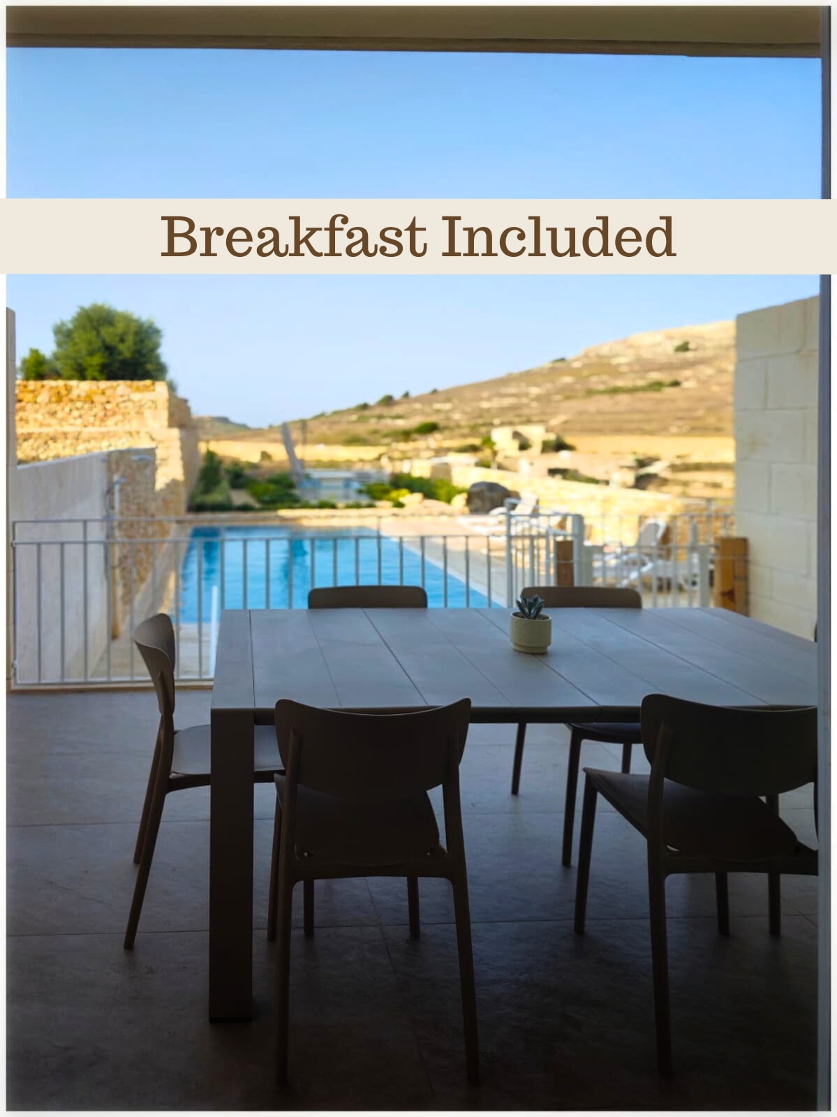 Complete use of a delightful converted farmhouse still featuring authentic features like stone flooring, typical coloured tiles cement tiles and maltese stone walls, birth room, very spacious bedrooms. Amazing pool area with shower, BBQ, dining area. Use of sauna and jacuzzi bath with sunset views. 2 car carport Main bedroom enjoys huge terrace overlooking pool area. Slightly heated pool .Fully equipped kitchen, washing machine amd dryer. Workspace available.