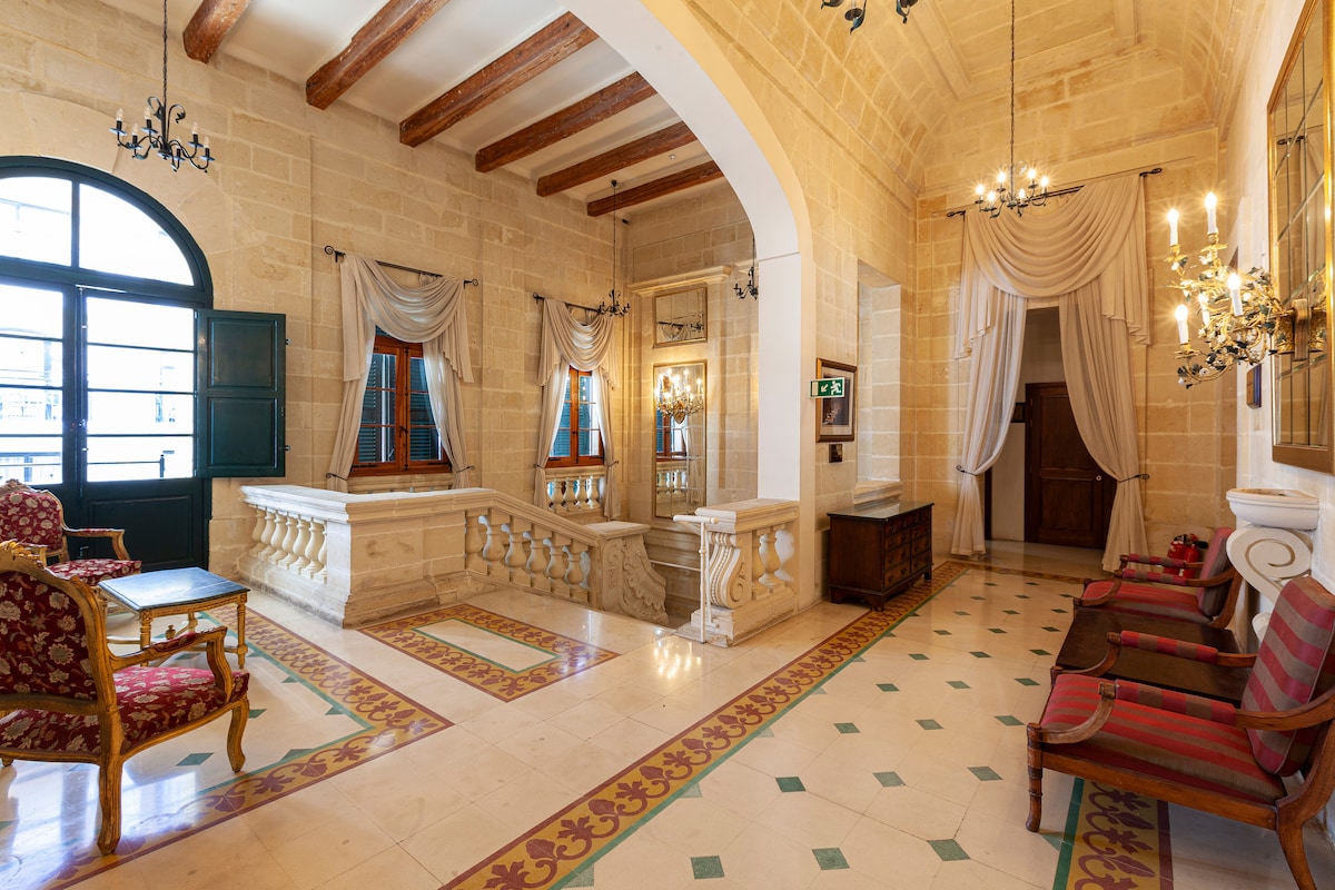 Hello Travellers & welcome to an EXCLUSIVE, UNIQUE central Palazzo IN MALTA. Our guests will have access to a level 1 entire FLOOR heritage PALAZZO with 5 Deluxe Rooms, each containing mini fridge, safes, AC and all individual bathrooms with access to the beautiful TERRACE, with access to a fully equipped kitchen. The PALAZZO comes with access to the neighbouring hotel with ACCESS to an indoor pool, ROOF TOP pool, full buffet breakfast and even GYM. Did we mention the amazing AC's and WIFI ?
