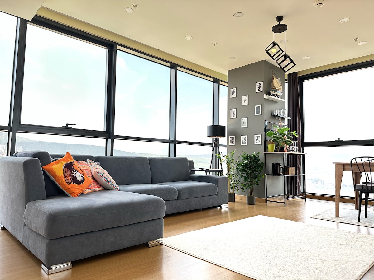 Description: Experience Istanbul from the top! This stunning 2-bedroom apartment offers breathtaking, uninterrupted panoramic views of both the sea and the city skyline. Designed for comfort and luxury, it's the perfect escape for families or business travelers. • View: Floor-to-ceiling windows with incredible city & sea vistas. • Comfort: Stylish, modern design with premium mattresses. • Location: 2-minute walk to Metro. • Amenities: 24/7 security, Wi-Fi, Full Apartment
