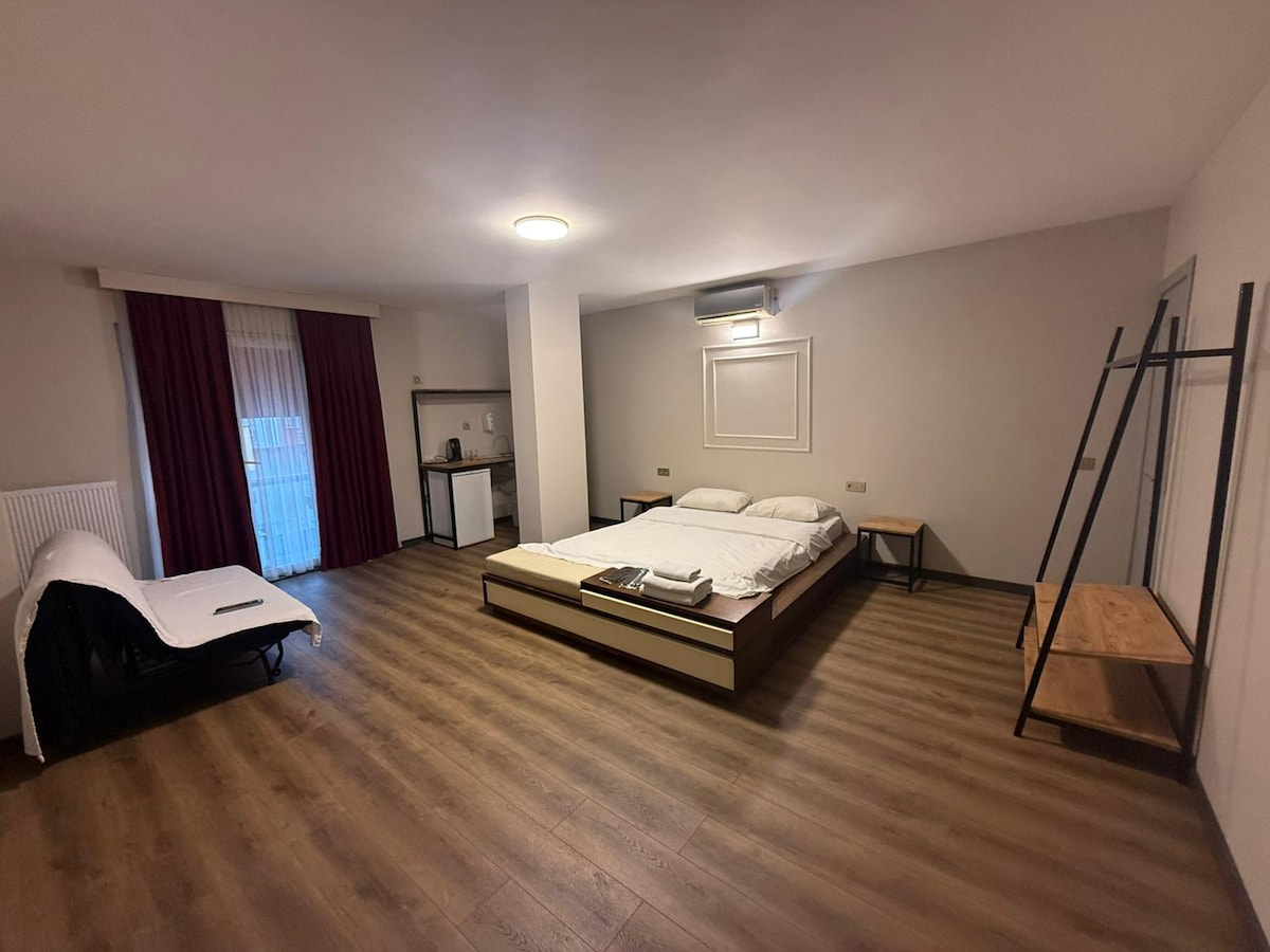 Zarif detaylarla tasarlanmış Premium Studio odamız, modern şıklığı üst düzey konforla buluşturur. Titizlikle yenilenmiş olan odamız, ferah ve sofistike dekorasyonu ile seçkin bir konaklama deneyimi sunar. Yüksek hızlı Wi-Fi, klima ve özenle seçilmiş konforlu yatağı sayesinde ev rahatlığını hissettirirken; sakin, huzurlu ve sıcak atmosferiyle misafirlerine ayrıcalıklı bir konaklama vadeder.