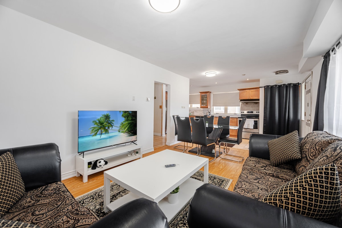 Tastefully decorated .cozy. luxurious 5 Km to Pearson Airport. 25 minutes to Union Station. downtown Toronto Lakeshore in Malton, Mississauga. Fully equipped kitchen large TV with Netflix etc. sleeps 4 -6, , One Car parking quiet neighborhood. . 3 Km to Malton GO Station, 10 min to International Centre. Toronto Congress Center. Woodbine Casino. Close to all Highways, Square One shopping mall. Well connected by public transport. Ride-sharing facilities in plenty.