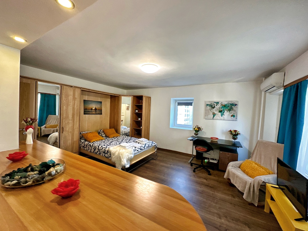 I am waiting for your arrival in my recent renovated comfortable studio, situated in the heart of Bucharest, near the main attractions: Old Town, Parliament House, Theaters and various restaurants around. It has been renovated with high standard materials and has all the possible amenities for a super comfortable stay. Inside you will find also a kitchen with all the utensils for a light meal.