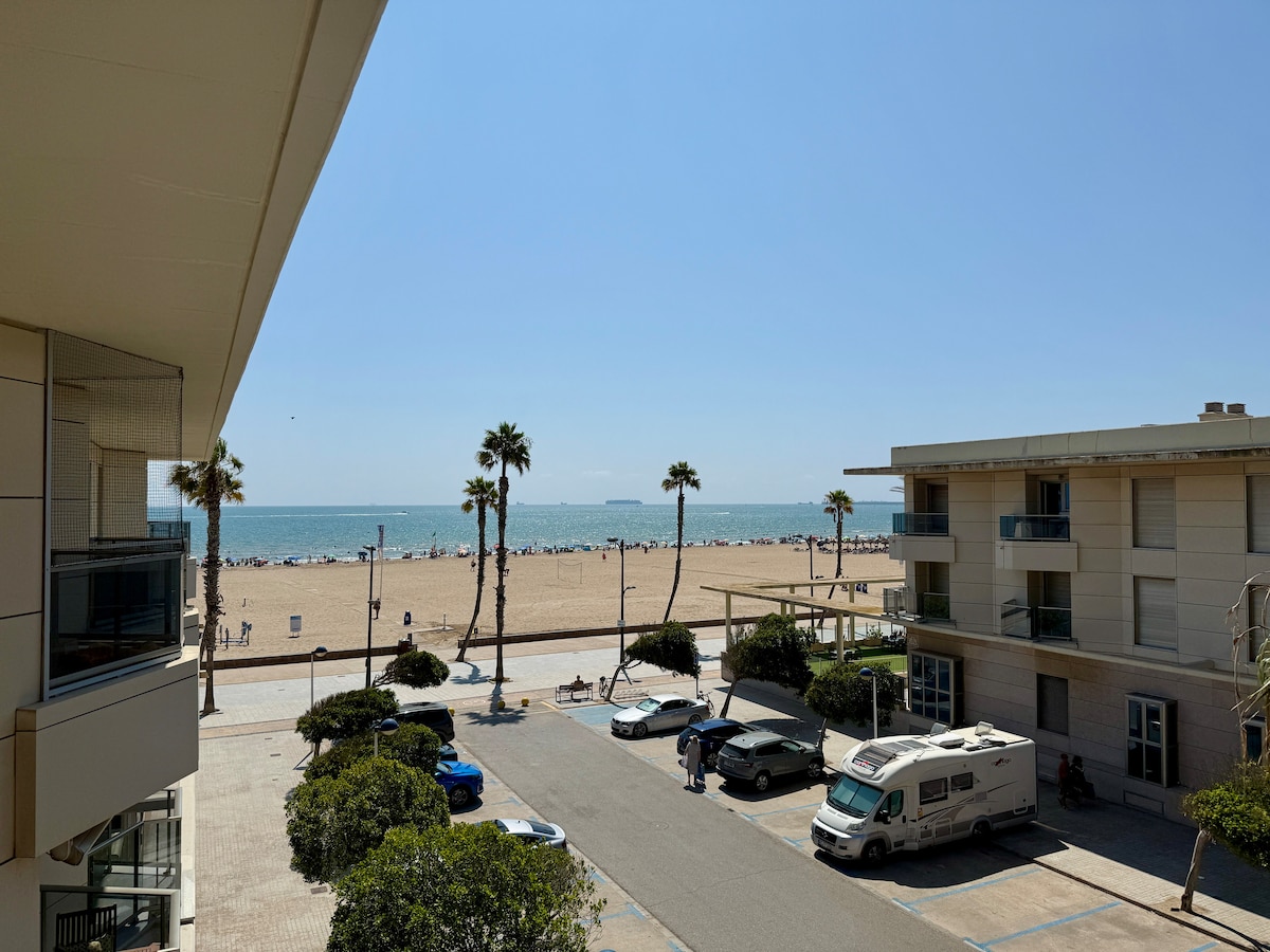 Fabuloso apartamento en primera línea de playa. Conocida como “La Pequeña Venecia”. Maravillosas vistas al mar y a sólo 4 km de Valencia Ciudad. Totalmente equipado, 68mt2., 2 habitaciones, 2 baños, cocina independiente, salón comedor, wifi, TV, balcón, plaza de garage, ascensor. Aire acondicionado frío/calor en habitación principal y salón comedor. Ventiladores en ambas habitaciones. Frente a supermercado y gran oferta gastronómica. Quédate aquí si quieres estancia soñada e inolvidable!
