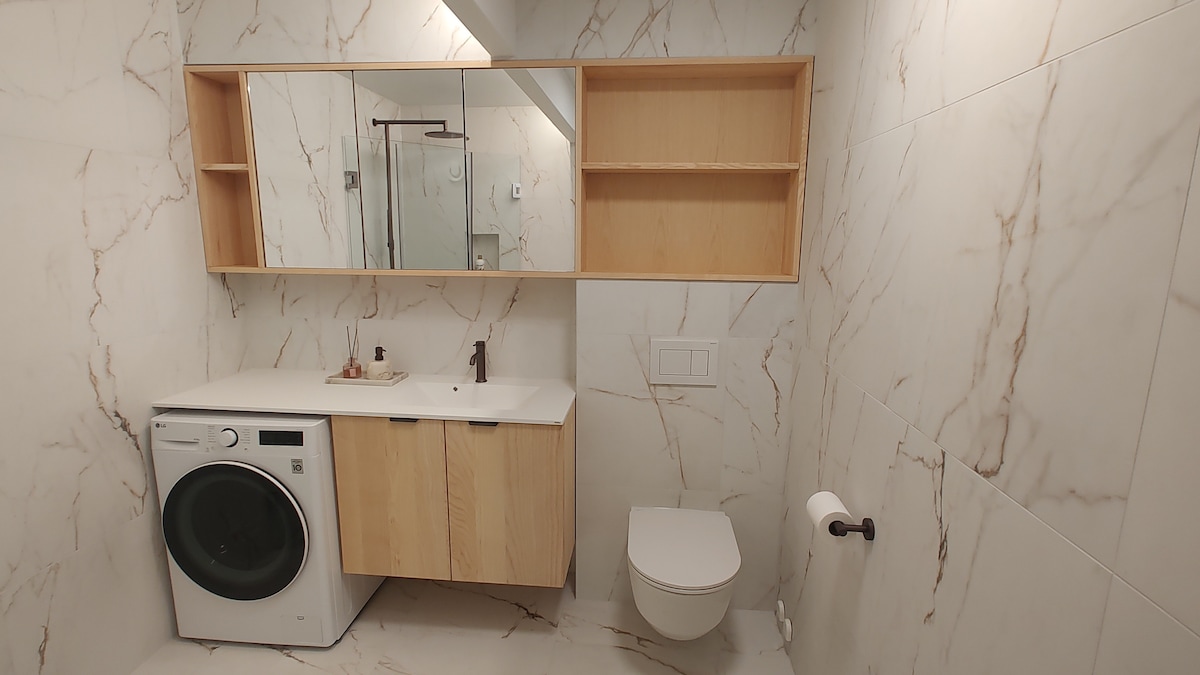 Our apartment (approx 30 m2) have a combined well equipped kitchen and living room with TV, fast internet connection and two good quality single beds. The apartment also has private entrance, a small hallway, and a nice bathroom with washing machine. Be aware that this is a basement apartment, with lower ceilings. Steps can be heard from above during daytime. Parking available.