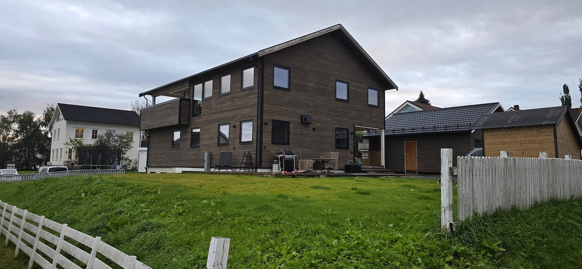Very cozy and small apartment. New in 2022 and very high standard. 1 min from train and bus station and 10 min from Trondheim (Værnes) AirPort or 20 min to Trondheim Central Station. 5 min walk to city beach and trails with amazing view of the fjord. We have 2 frenchies and hens walking around in our garden filled with dahlias and cherry trees.