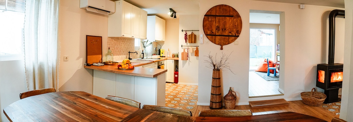 Discover your perfect getaway in this luxurious 200 sqm, two-story villa nestled in the peaceful village of Banya. Ideal for families or groups, the villa offers four spacious bedrooms, a fully equipped kitchen, and a cozy living room with a fireplace for ultimate relaxation. Enjoy the privacy of your own mineral water pool, renowned for its healing properties, right in the comfort of a large, well-kept yard. Enjoy cooking on the outdoor BBQ and create a memorable meal.