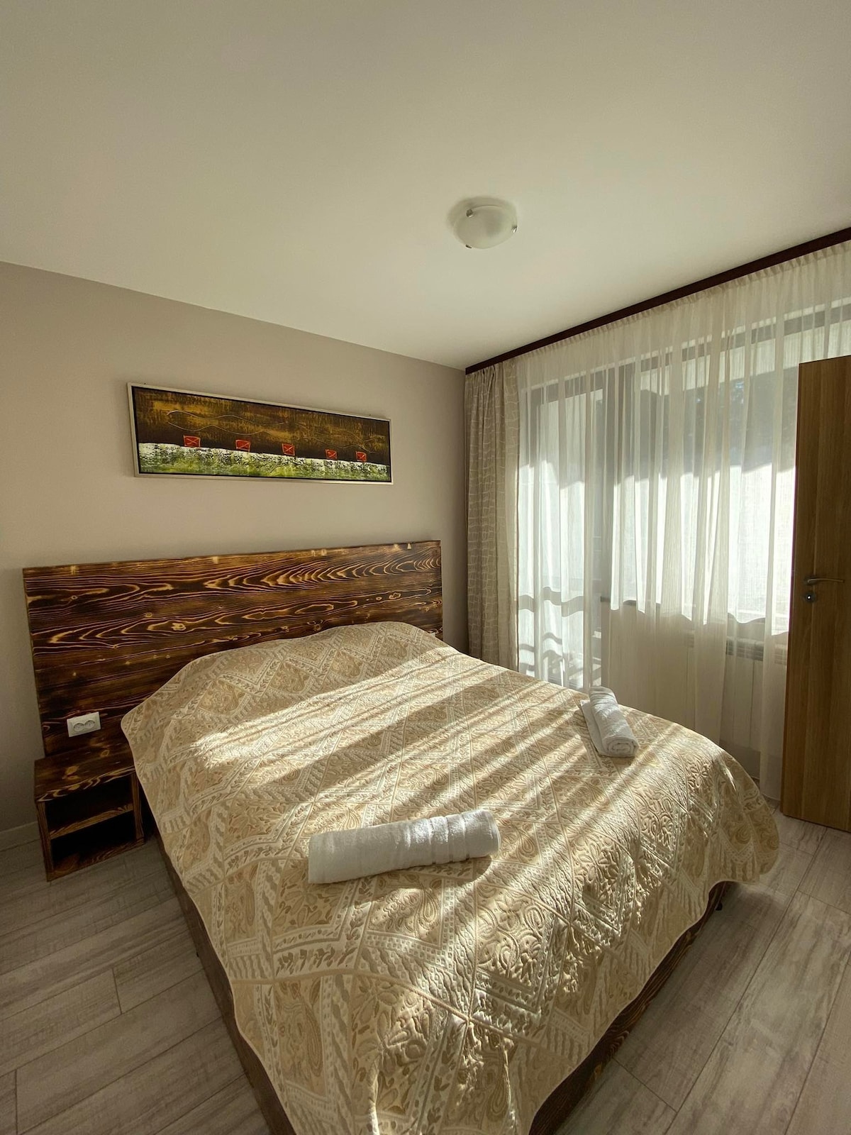 Whether you're planning a ski family trip, or a summer hike, our property offers all the necessary utilities to help you feel at home. Cook a meal in the fully equipped kitchen, drink coffee watching the sunrise, or enjoy a day in the spa* center of Borovets Hills. The property is within 8 minutes walk from Yastrebets ski slope, and further 4 minutes ride to Yastrebets chairlift, giving advantage to those racing for first-chairlift. *SPA center accepting guests of the flat at additional cost.