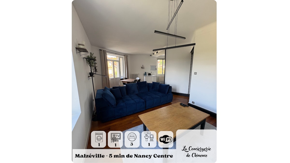 Welcome to BnB Centre-Ville 1 in Nancy! Located on the 3rd and top floor, this modern apartment offers all the comforts you need for a pleasant stay. Nearby shops and restaurants. 🧑⚕️Le is a 2-minute walk from CHRU (Hôpital Centrale de Nancy) + Maternity Hospital. - 🧑🎓Campus Science Po + CNAM are a 5-minute walk away. -🚅 Train station + Place Stanislace are a 15-minute walk away We look forward to welcoming you for an unforgettable stay in Nancy!