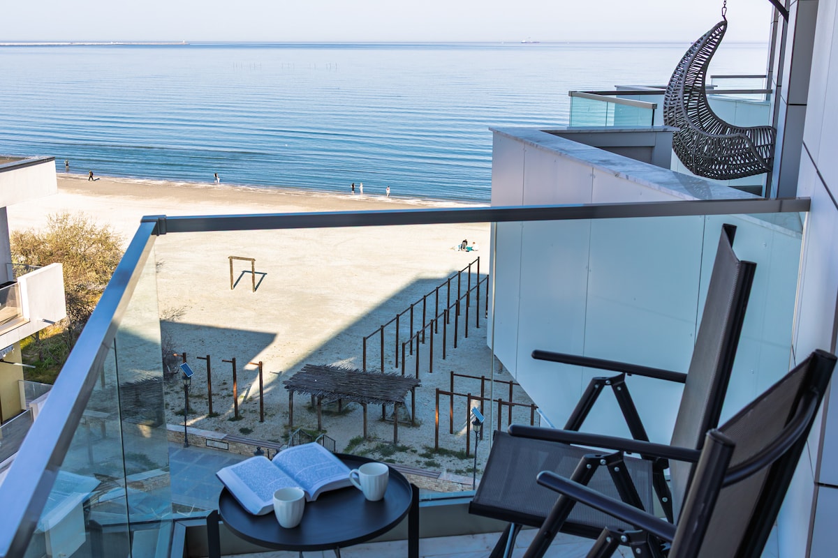 Voyage apartments oferă spre închiriere apartament 4 camere situat exact pe plajă, pe nisip. Apartamentul este potrivit pentru familii sau grupuri de prieteni, asigurând un spațiu generos și intimitate. Fiecare dormitor are baie proprie. Din toate cele 4 camere aveti o priveliște superbă către mare, priveliște care poate fi admirată și de pe cele două terase ale apartamentului. Apartamentul este complet utilat astfel încât să nu vă lipsească nimic pe perioada sejurului.
