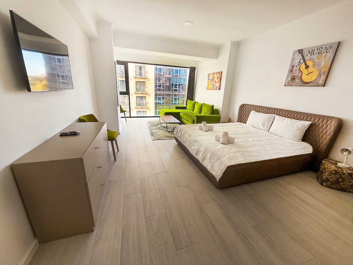 Cea mai bună modalitate de a experimenta frumusețea orașului Constanța este să vă cazați chiar în inima acestuia! Garsoniera este situată la doar 10 minute de stațiunea Mamaia și la 2 minute de City Park Mall, Lacul Tăbăcariei, Delfinarium, McDonalds și Satul de Vacanță. Vă veți putea bucura de zile însorite pe plaja și de facilități precum: bucătărie complet utilată, Smart-TV, duș walk-in, dar și de alte dotări esențiale ce vor trasforma șederea dvs. într-o amintire minunată!