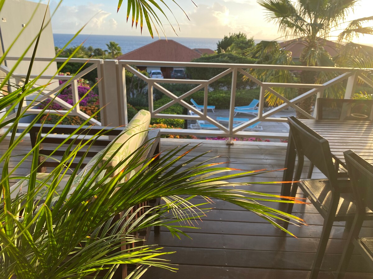 Take in the incredible ocean view and sunsets while enjoying a cocktail on the spacious balcony or by one of the largest pools on the island. This 2 bed, 2 bath spacious, modern condo will feel like your home away from home. The oversized master bedroom has a king bed, ensuite, and a workspace. The wifi is exceptional. The second bedroom has 2 single beds that together make another king. Piscadera is centrally located. Only 10 mins. from the airport. Parking, gym and security all included.