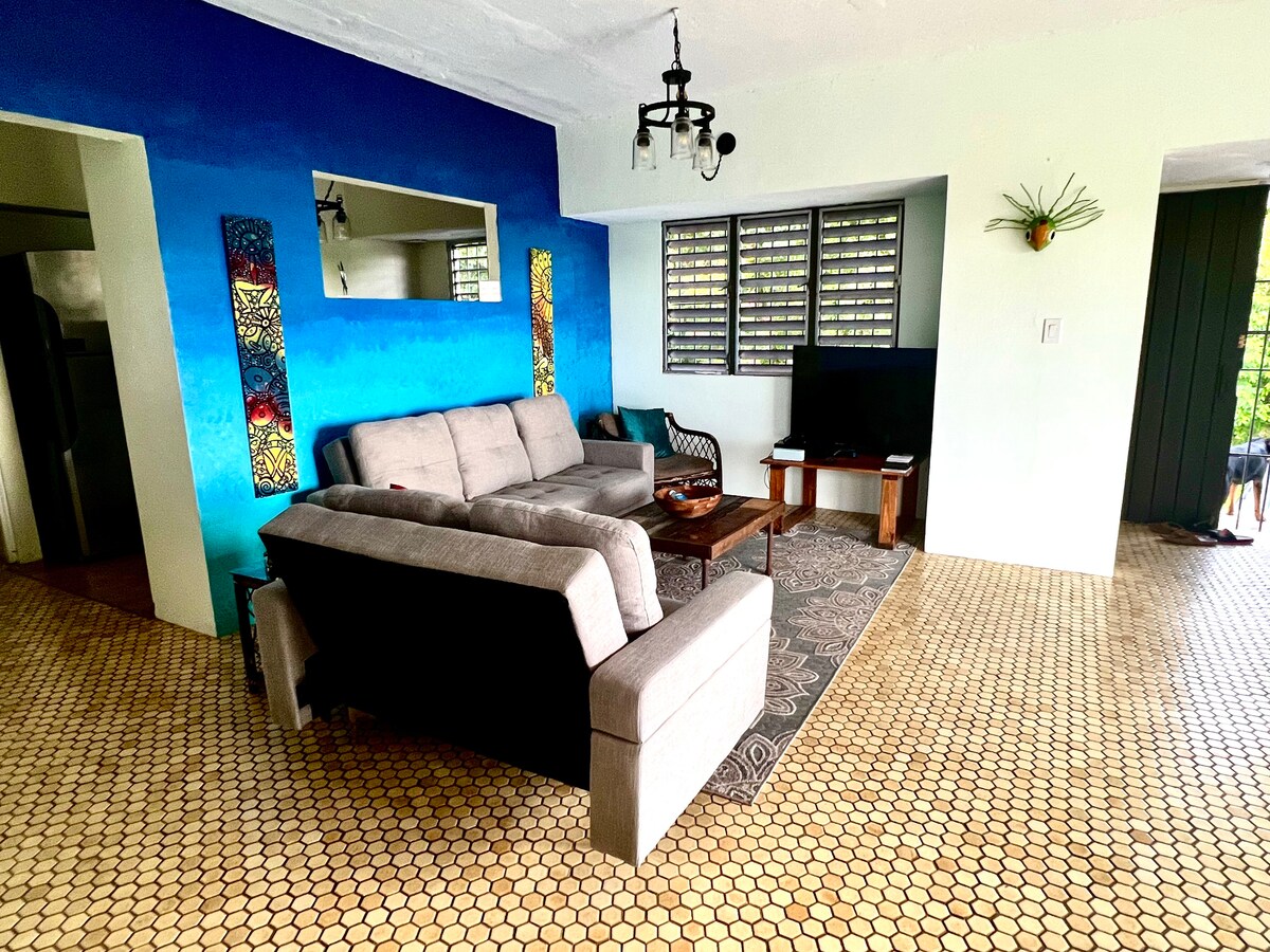 Relax with your favorite person at this peaceful retreat. Located within an 11 minute walking distance (3 min drive) to Playa Fortuna, a private-like beach, and just down the street from the famous Luquillo Kioskos, a strip of restaurants, shops, and bars. Enjoy the beautiful ocean view and the luscious greenery! WE ARE FULLY SOLAR-POWERED, protecting you from common power outages. Nestled between El Yunque National Rainforest, and a sprawling beautiful coastline, this location can’t be beaten.