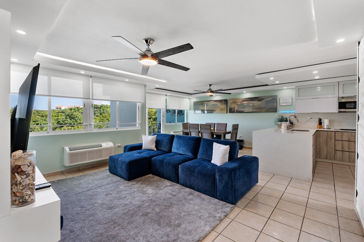 HAPPINESS BEACH APARTMENT is a modern yet cozy retreat with beach access just a 1-minute walk away. Located in a gated community with 24/7 security, it features two pools and a private corner layout on the ground floor with balcony and terrace access. Conveniently close to grocery stores, El Yunque Rainforest, restaurants, malls, and more! Perfect for a relaxing getaway…We continue to follow strict cleaning protocols for your safety.
