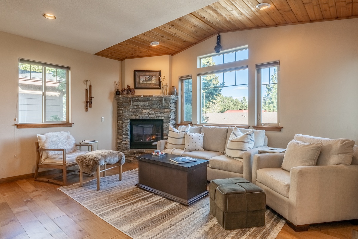 Relax in this renovated Mammoth Lakes condo—walk to shops, dining & trails or hop the shuttle to Mammoth Mountain. Perfect for couples or small families, it features vaulted ceilings, fast WiFi & access to a heated pool, hot tub & sauna! ⭐ “Everything was spotless, stylish, and walkable—one of the nicest stays we’ve had!” – Daniel 🌄 HIGHLIGHTS ✓ Walk to town, trails & Mammoth shuttle ✓ Hot tub, heated pool & sauna access ✓ Fast WiFi + workspace for remote stays