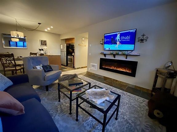 Beautiful sun-lit condo in the Snowcreek Resort. Windows face south towards a great view of the Eastern Sierras. The condo sits next to the Snowcreek Resort Golf Course and you can easily walk from the condo directly to some local trails. It is a 15 minute drive straight to Mammoth Mountain Main Lodge on Minaret Road. Vons grocery store, Snowcreek Athletic Club, shopping and dining are all about 5 minutes away. Parking is shared on the street with no reserved spots. TOML-CPAN-16394