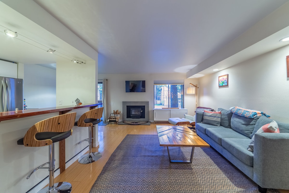 Escape to Summit Comfort your perfect Mammoth retreat. Just 0.3 miles to Eagle Lodge (an easy walk or free bus ride) our serene getaway is ideal for couples, small groups or families. Unwind in the hot tub or sauna steps from the unit & enjoy the convenience of covered parking-no snow shoveling required! Restaurants, shops & markets are just 5 min. away. Whether you’re enjoying nature, hitting the slopes or relaxing by the fire Summit Comfort offers everything you need for an unforgettable stay