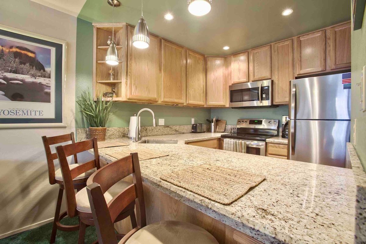 Discover comfort and style in this newly renovated Sierra Manors condo — steps from dining, shops & the free ski shuttle. After mountain hikes or powder days, kick back fireside, soak in a spa, or stream your favorites on a Smart TV with surround sound for a true movie-night vibe. With upscale finishes, a full kitchen, and thoughtful touches throughout, it’s the perfect year-round retreat. Reserve your stay and make Mammoth your home away from home!