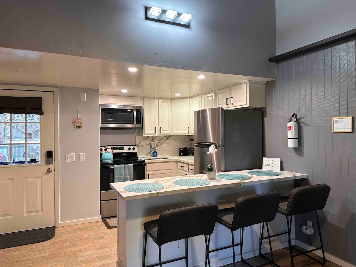 Relax in this renovated Mammoth Lakes condo—walk to shops, dining & trails or hop the shuttle to Mammoth Mountain. Perfect for couples or small families, it features vaulted ceilings, fast WiFi & access to a heated pool, hot tub & sauna! ⭐ “Everything was spotless, stylish, and walkable—one of the nicest stays we’ve had!” – Daniel 🌄 HIGHLIGHTS ✓ Walk to town, trails & Mammoth shuttle ✓ Hot tub, heated pool & sauna access ✓ Fast WiFi + workspace for remote stays