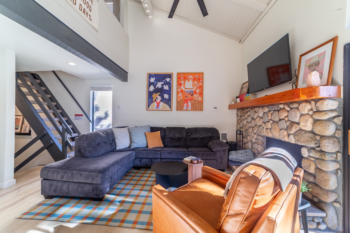 Relax in this renovated Mammoth Lakes condo—walk to shops, dining & trails or hop the shuttle to Mammoth Mountain. Perfect for couples or small families, it features vaulted ceilings, fast WiFi & access to a heated pool, hot tub & sauna! ⭐ “Everything was spotless, stylish, and walkable—one of the nicest stays we’ve had!” – Daniel 🌄 HIGHLIGHTS ✓ Walk to town, trails & Mammoth shuttle ✓ Hot tub, heated pool & sauna access ✓ Fast WiFi + workspace for remote stays