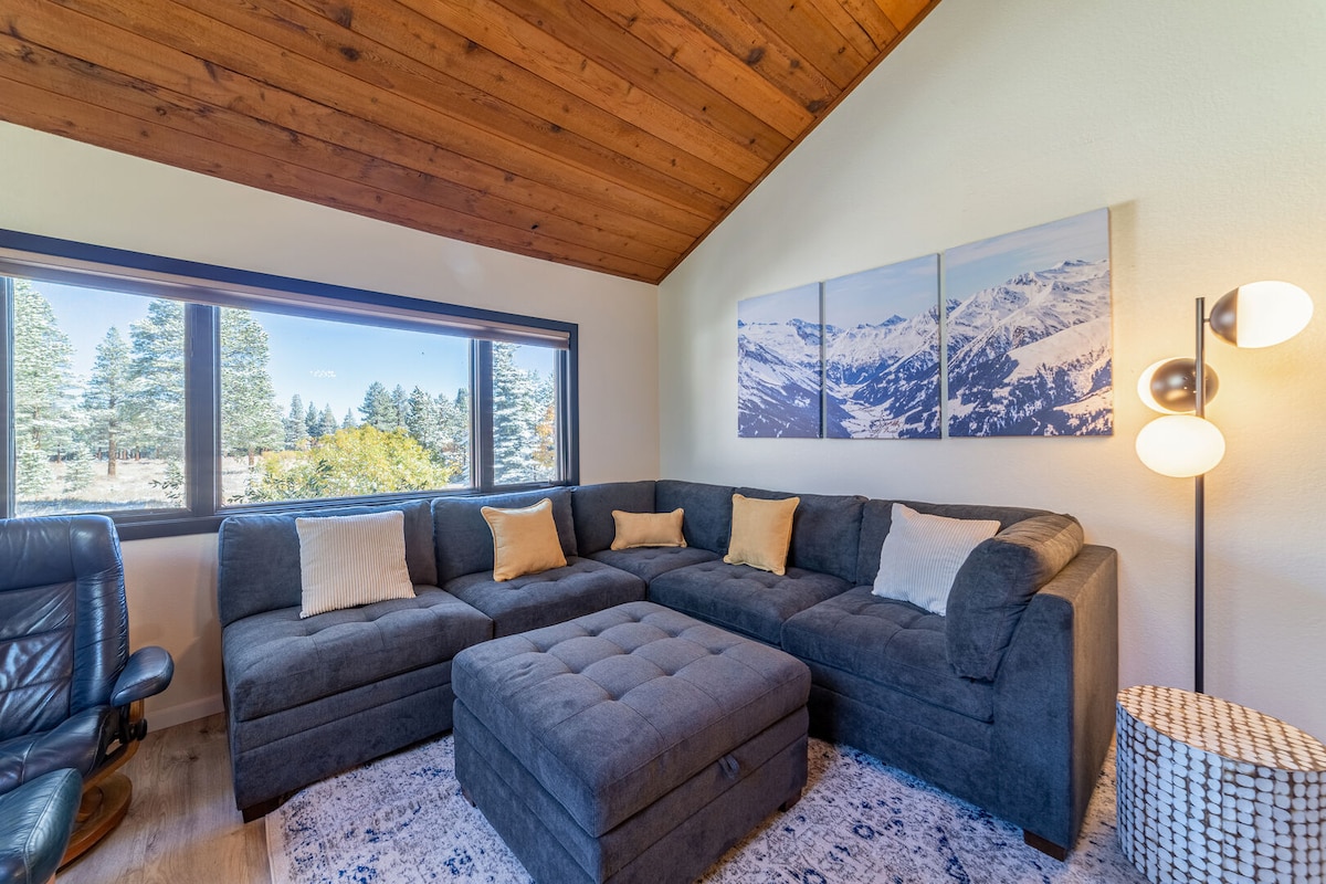 Our fully renovated condo (1st floor) features amenities like a clubhouse game room with air hockey and billiards, a sauna, and a shared hot tub. In warmer months, fire up the shared BBQ or go for a dip in the seasonal pool. Vaulted ceilings with exposed beams and a wall of windows create a bright and airy retreat for your next Mammoth getaway—perfect for groups of up to six guests. There is a free trolley that stops just 50 FT away, close to groceries, restaurants and Golf Course.