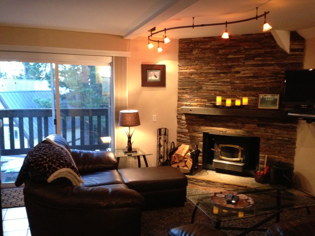 Just steps away from The Village at Mammoth and the Gondola up to Canyon Lodge, this cozy one bedroom is the epitome of Awesome! At the heart of Mammoth, restaurants, beer tasting and entertainment surround you, and the free transportation stops which take you literally everywhere in Mammoth are just steps away from your front door. Modern and comfortable, enjoy a wood burning fireplace, two flat screen TV's, WiFi. All spa and game room in also available. No pets allowed. Service included