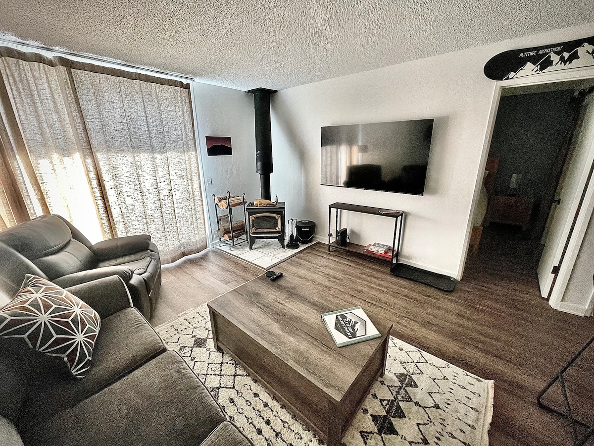 Relax in this renovated Mammoth Lakes condo—walk to shops, dining & trails or hop the shuttle to Mammoth Mountain. Perfect for couples or small families, it features vaulted ceilings, fast WiFi & access to a heated pool, hot tub & sauna! ⭐ “Everything was spotless, stylish, and walkable—one of the nicest stays we’ve had!” – Daniel 🌄 HIGHLIGHTS ✓ Walk to town, trails & Mammoth shuttle ✓ Hot tub, heated pool & sauna access ✓ Fast WiFi + workspace for remote stays