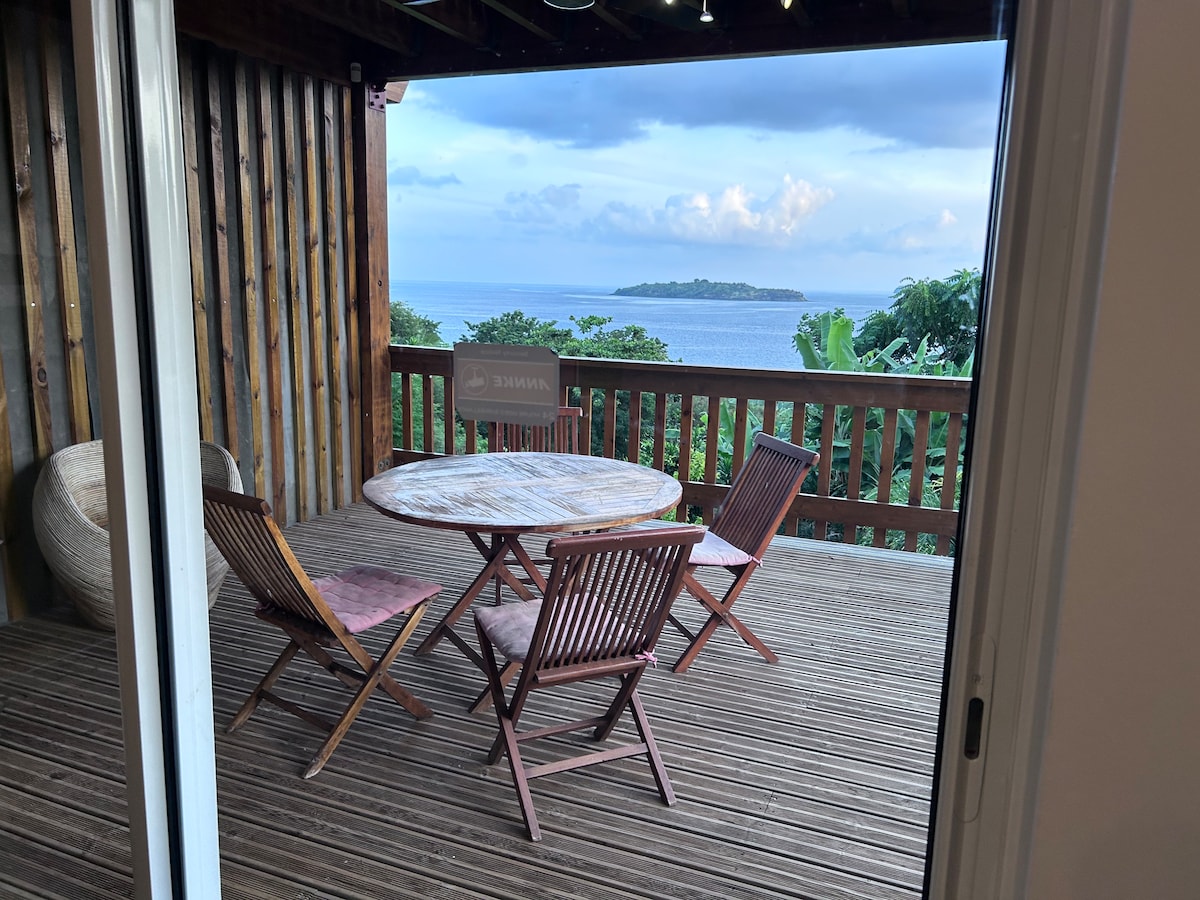 Logement unique, tranquille, paisible . Charmante T2: 1 chambre climatise, salon climatise une télévision à écran plat et une cuisine entièrement équipée, un AirFlyer, un micro-ondes, cafetier, bouilloire électrique et réfrigérateur ainsi qu'une salle de bains . Les serviettes et le linge de lit sont fournis. Pour plus d'intimité, l'hébergement insonorisé dispose d'un terrasse avec vue panoramique sur le lagon et ilot de Mtsamboro et une belle couche de soleil. 3 MIN de la plage.