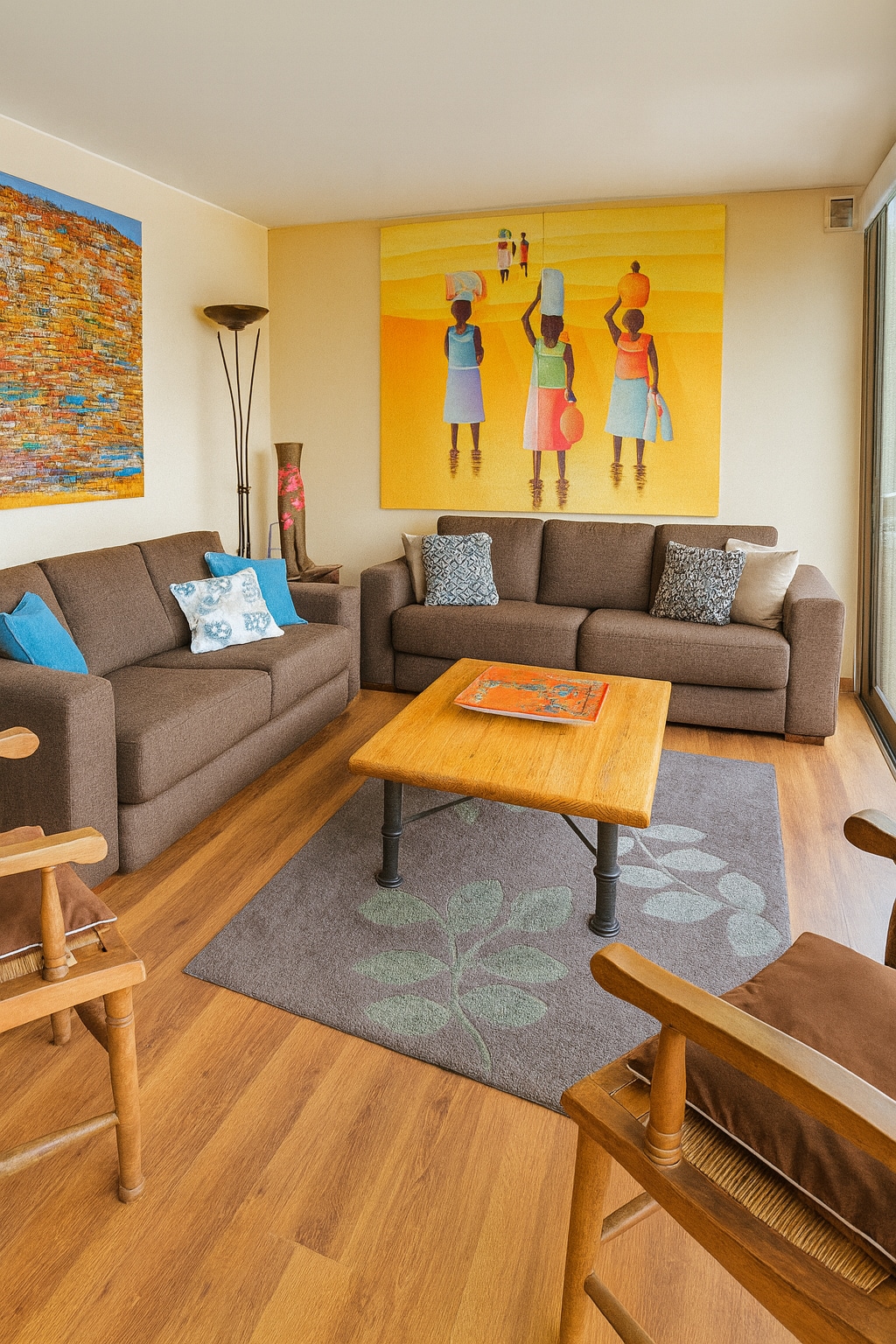 Descubre la experiencia donde el diseño moderno se encuentra con raíces precolombinas y cultura Mapuche. Depto temático, combina líneas modernas con selección réplicas cerámica prehispánica y textiles mapuches que llenan espacios de historia y calidez. A 25 min caminando mall Alto las Condes, piscina panorámica, incluye estacionamiento privado. Depto. no recomendable niños. Pueden alojar con bebé si traen cuna. A pocos minutos mall Alto las Condes y Parque Arauco, Prohibido visitas y fiestas