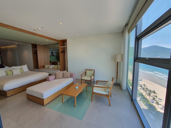 Experience the fabulous side ocean views in our modern 2-bedroom apartment. There are balconies in both the living room and bedroom. The fully equipped kitchen allows you to cook just like at home and we also have washing machine and dryer. My Khe Beach is located just 50m away from the apartment and guests can use infinity pool on the 33rd floor of the building with some extra cost (100.000vnd/person) as well As the gym and sauna (200.000/person)