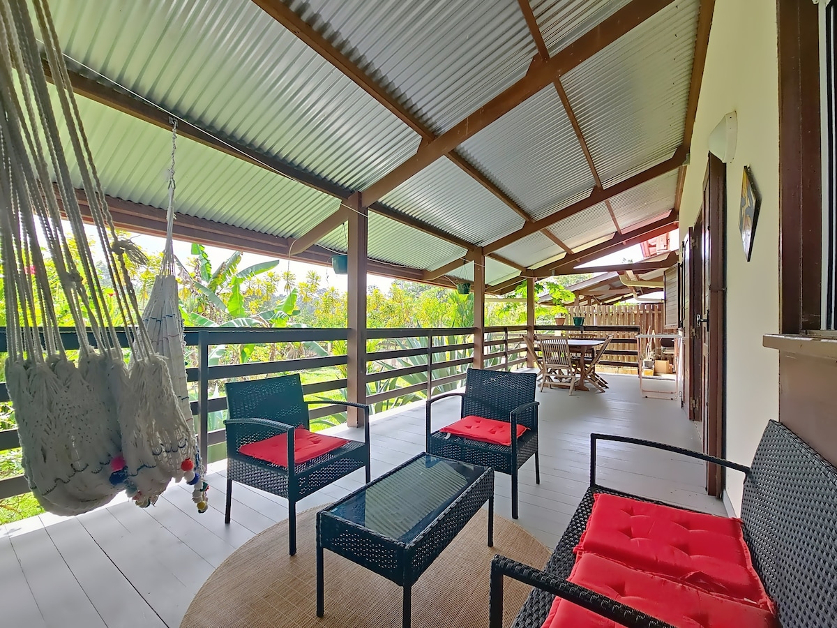Carbet au milieu d un grand jardin arboré, en bord de crique et à quelques mètres du fleuve Mana. Idéal pour la pêche, la détente, le calme et les amoureux des plantes et de la nature. Belles balades aux alentours. Canoë à disposition pour balade ou pêche sur le fleuve.
