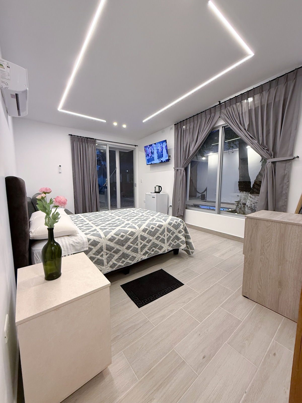 🏖 Apartamento Exclusivo Disfruta del confort y la tranquilidad en este moderno apartamento de concepto abierto dentro de una urbanización privada con seguridad 24/7. Relájate en la piscina privada con masajeadores (hasta las 22:00) o en el patio compartido con parrilla y zona de entretenimiento. Estacionamiento disponible. Ubicado en la Ruta del Sol, cerca de Piedra Larga (1.4 km) y San Mateo (5 km). Acceso a piscina grande, parque y canchas deportivas. ¡Reserva tu escape perfecto!
