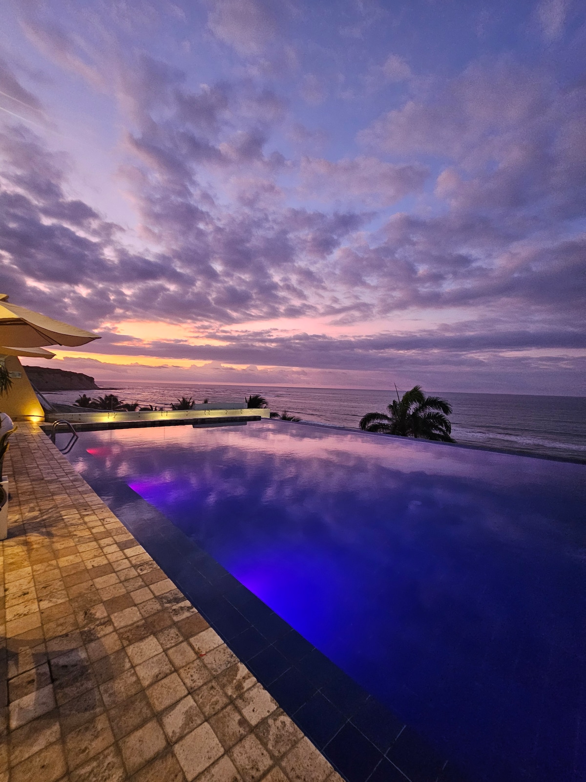 This beautiful suite is located right in front of the ocean with direct access to the beach and a swimming pool. Whether in your suite, in the pool, or on the beach you will hear the relaxing sound of ocean waves and enjoy magnificent sunsets. The property is located in a quiet area, a 30 minute walk, or 5 minute car ride to Canoa. Our English and Spanish speaking on-site caretaker is here to help you with any questions about the property or the area.