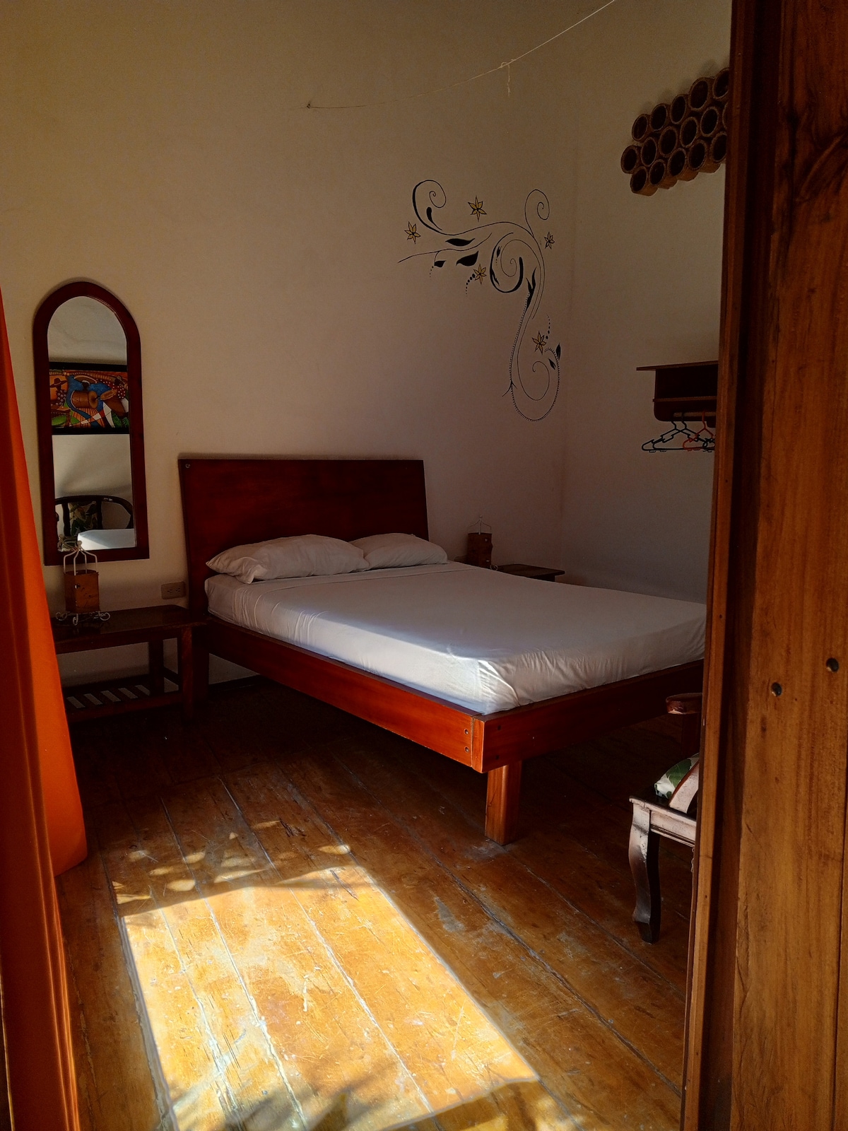 A1 | Disfruta de la tranquilidad de la playa Las Núñez. Un verdadero lugar para descansar. Tu habitación familiar privada triple tendrá baño privado, A/C, wifi y Vista a la montaña. Podrás compartir con otros huéspedes la piscina, área social y un mirador. Contamos con área de video compartida y karaoke. La habitación está dentro de las instalaciones del Hotel Estación del Sol. Como en la foto, tenemos dos camas. Una matrimonial de dos plazas, y una aérea de una plaza.