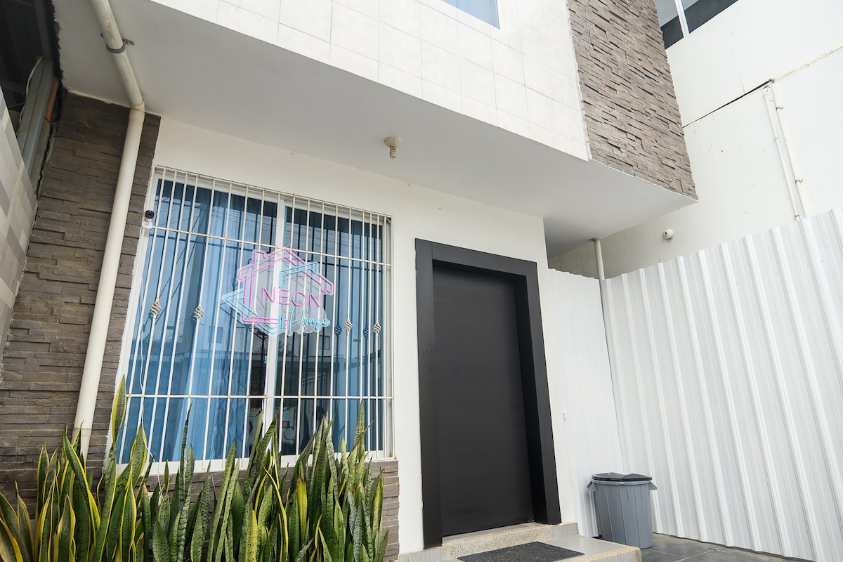 Neon House y Next Level House, dos casas conectadas: Next Level House diseñada para la diversión con juegos y entretenimiento, y Neon House con espacios modernos iluminados por decoraciones neón, ideales para familias y grupos grandes que quieren descansar cómodamente mientras comparten y disfrutan juntos.