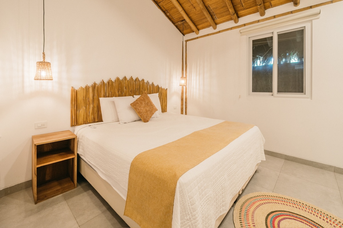 Para 2 personas. Simple. Rústica .eco-friendly. clase económica. Ideal para descansar. Y disfrutar de todas las instalaciones que tiene el jardín natural. Zona de hamacas. Parrilla. Cocina compartida. Y a 10 metros de la playa.(Baños compartido). Zona de restorant en la playa, con lo mejor de la gastronomía fusión argenta-ecuatoriana y los mejores cócteles y cervezas heladas. Si te gusta o sos amante del surf 100 mts de la punta.( surf point) 350 mts de pueblo.( zona rosa).
