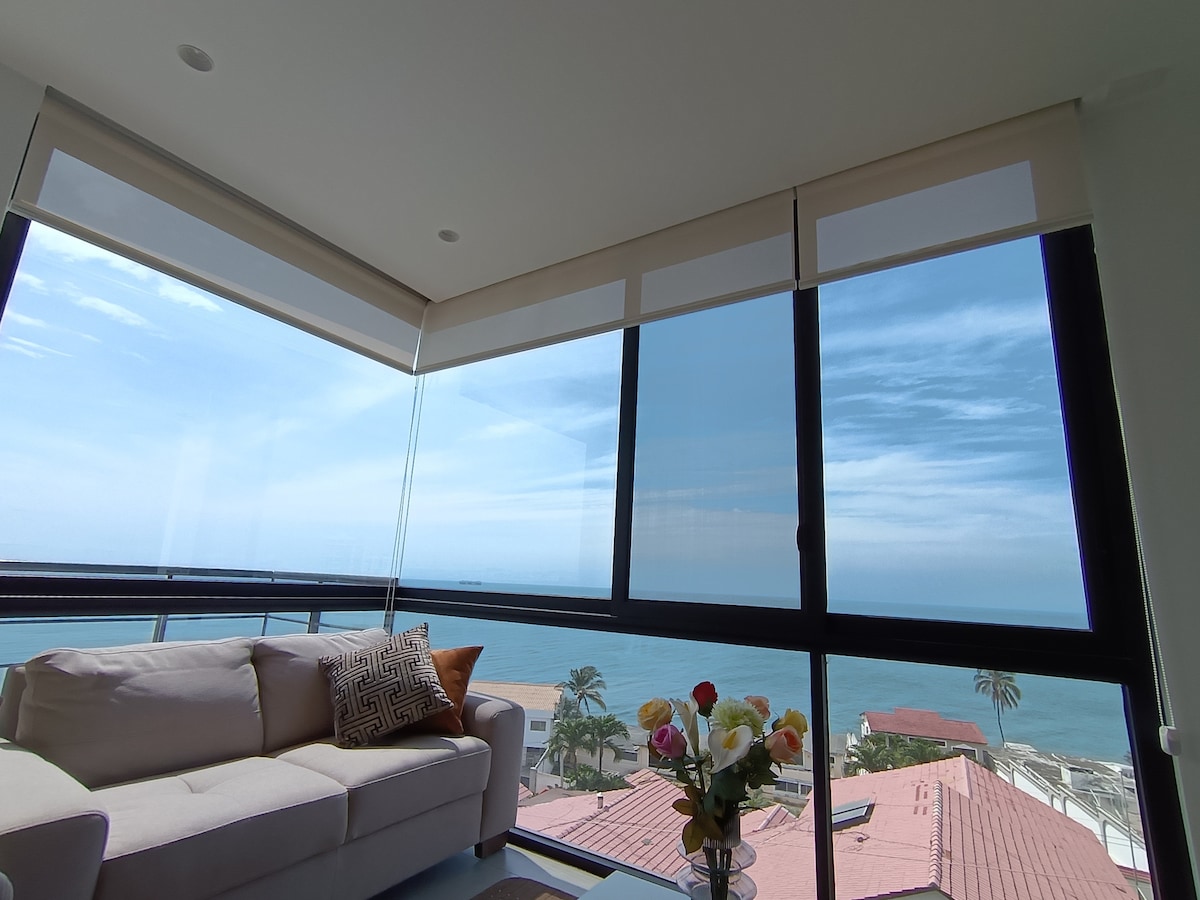 Welcome to our oceanfront paradise in Playa Murciélago, Manta. Enjoy an unforgettable stay in a spacious 3-bedroom, 3-bathroom apartment. The master bedroom has a private bathroom and ocean views; the other two bedrooms have air conditioning and city views. The building is secure, with 24/7 security, cameras, accessible access, an elevator, and 2 large parking spaces. Relax in the living room and kitchen with ocean views, or sip a coffee on the balcony. WE'LL BE WAITING FOR YOU!