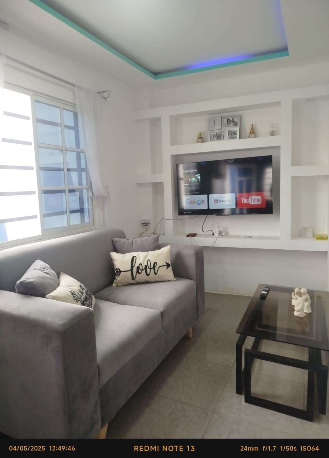 Bonita casa segura con aire acondicionado y TV, parqueadero, Wifi, 2 baños, agua caliente, cocina totalmente equipada, patio exterior con hamacas y parrilla, ubicada frente al terminal de auto buses, a 5 minutos de la playa. Beautiful, secure home with air conditioning and TV, parking, Wi-Fi, 2 bathrooms, hot water, a fully equipped kitchen, an outdoor patio with hammocks and a grill, located across from the bus terminal and 5 minutes from the beach.