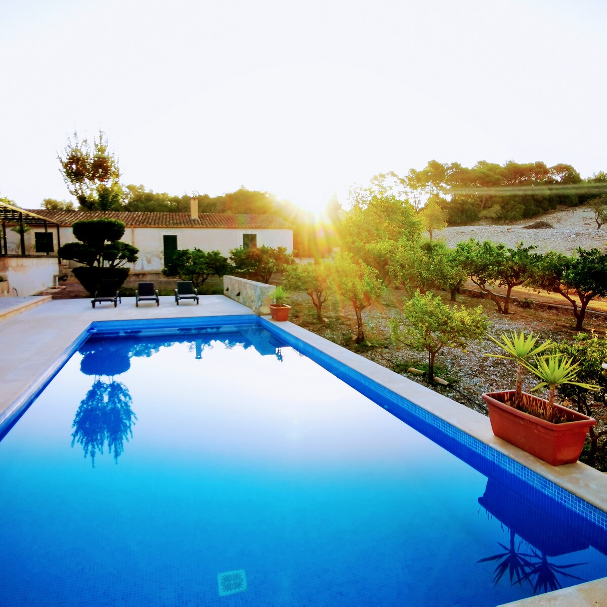 disfruta de unas mágicas noches estrelladas y la energía de un sol abrasador en un entorno idílico y típicamente mallorquín y a la vez de la cercanía del mar , a tan sólo 8 kms de la casa serpenteando caminos rurales para encontrar bellas calas y largas playas de arena blanca