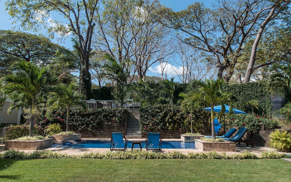 Lujosa y Amplia Villa con ubicación premium en condominio cerrado con seguridad las 24 horas. Villa de Arquitectura Contemporanea de 600 metros de construcción, 5 cuartos y 5.5 baños; agua caliente, Cable TV Digital, Wifi, Equipo de Música , 4 Terrazas (2 abiertas y 2 techadas con TV). Cada cuarto equipado con TV, cortinas blackout, A/C y abanicos de techo. Otras amenidades: Horno de leña, barbacoa, piscina, poolhouse, jardines de revista para meditar y lugar para ejercitar en la naturaleza.