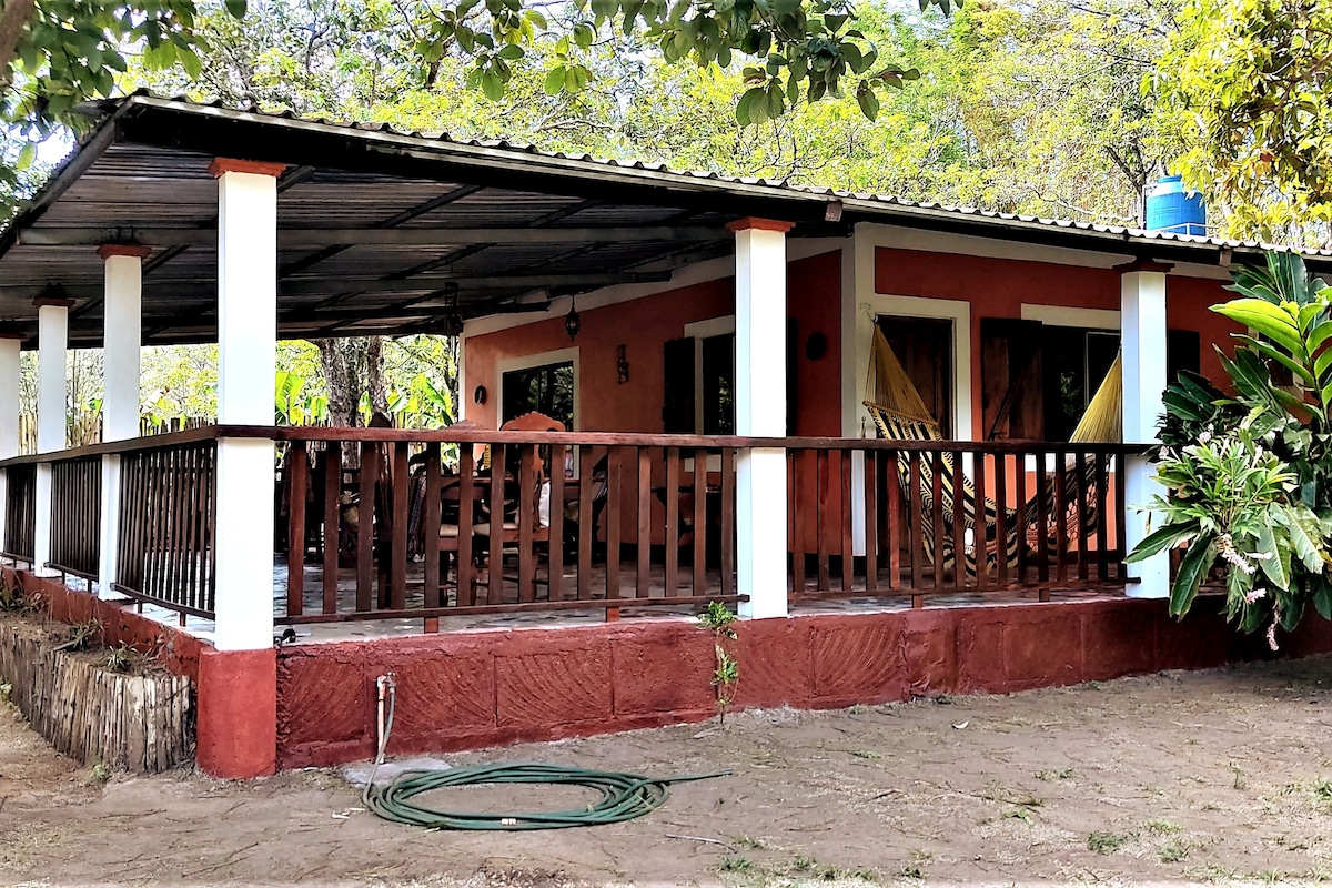 NICE "fully equipped", modern house (80 M2 + 75 M2 veranda) (Opt. fiber up to 100mbps) A/C lounge and main bedroom NETFLIX Plenty of privacy. Stunning 4000 m2 private aera Very safe environment "FREE" WEEKLY, 4 HRS HOUSEKEEPING Prestations of MASSAGES, cooking, ironing, baby sitting, laundrette .. SMALL FEE! Within a beautiful green 3.25 hectares flat land, facing the Mombacho volcano. 10mns 5mns from Diriomo village, 10 mns from the mirador of Diría (Laguna Apoyo) and 20 mns, Granada