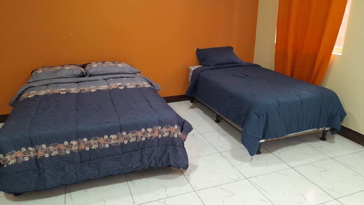 This is a series of independent apartments de 1 y 2 beds matrimonial, just minutes from the Augusto Cesar Sandino International Airport, shopping centers, restaurants, and more. This apartment has: one Queen bed and one twin bed, dining room, microwave, private bathroom, closet, air conditioning, and Wi-Fi. The apartments also have private and secure parking with security cameras, the facilities are completely closed with automatic gates.