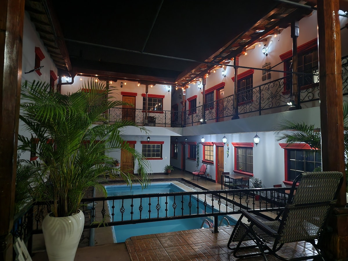 Stay at a charming family friendly hotel in the peaceful Reparto San Juan, Managua. Located in a safe, walkable area, it’s just steps from Metrocentro Mall, unique shops in Los Robles, Corona Plaza, parks, restaurants, and bars in the Zona Hippos. Enjoy a dip in the pool, spacious air-conditioned rooms, and 24-hour reception with multilingual staff. Free continental breakfast and coffee are available