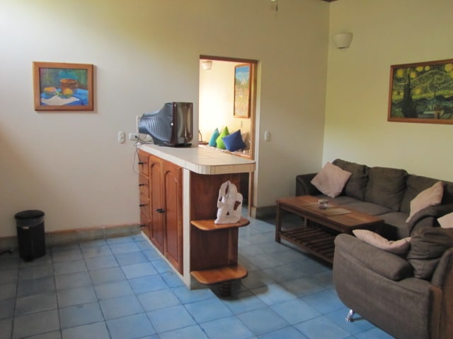 Apartamento de una recamara con camas Queen y un sofá cama adicional moderno y versátil. Equipado con cocina básica, muy conveniente para estadías prolongadas. Excelente microclima en zona céntrica de la ciudad de Managua. Con servicios de agua caliente, a/c y wifi de alta velocidad. Con ofertas económicas de servicios adicionales de pago como restaurante y taxi dentro de las instalaciones. Un servicio de limpieza incluido por 3 noches de estadías o dos limpiezas por semana.