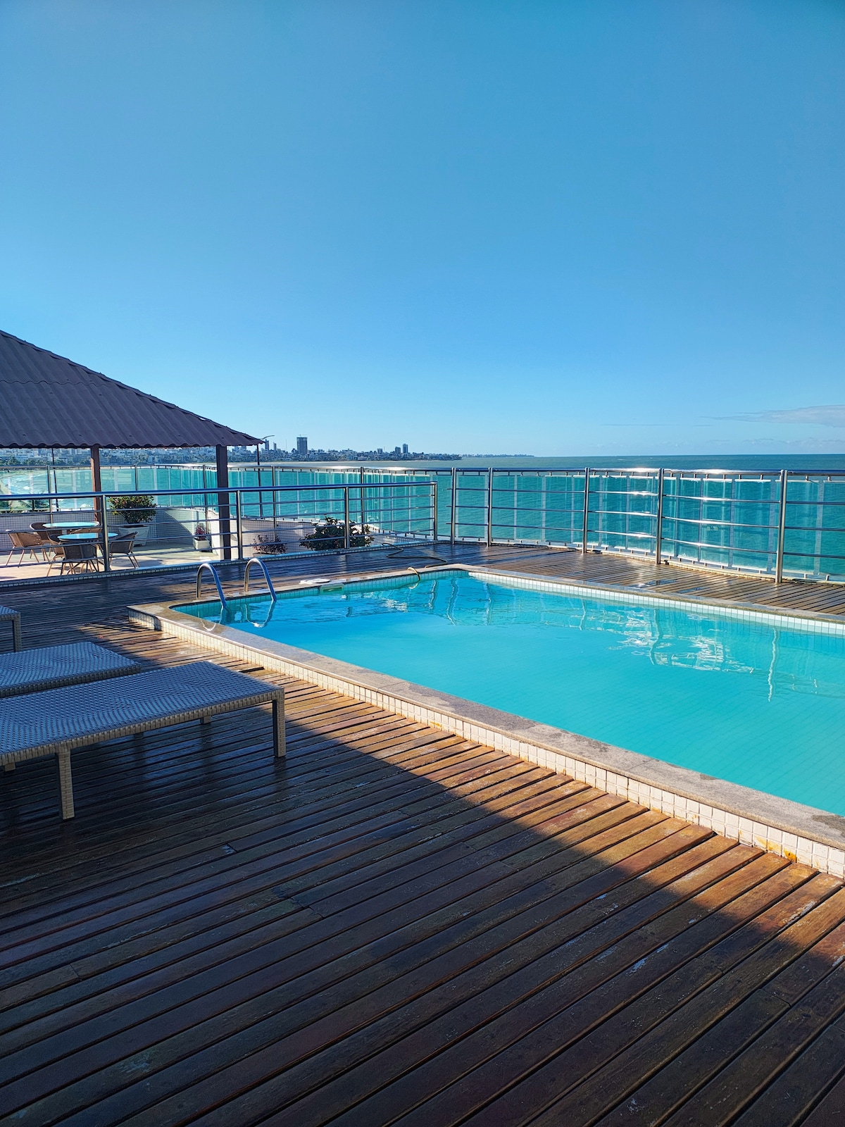 Enjoy the best of Manaíra, João Pessoa, just 280 meters from the beach! This studio offers the convenience of having restaurants, pharmacies, markets, and a square just steps away. Your perfect base for exploring the city. The building enhances your experience with a rooftop pool overlooking the sea. The unit also features a kitchen, Smart TV, and air conditioning. Don't miss the chance to live this experience. Book your stay now and secure your place in the sun!