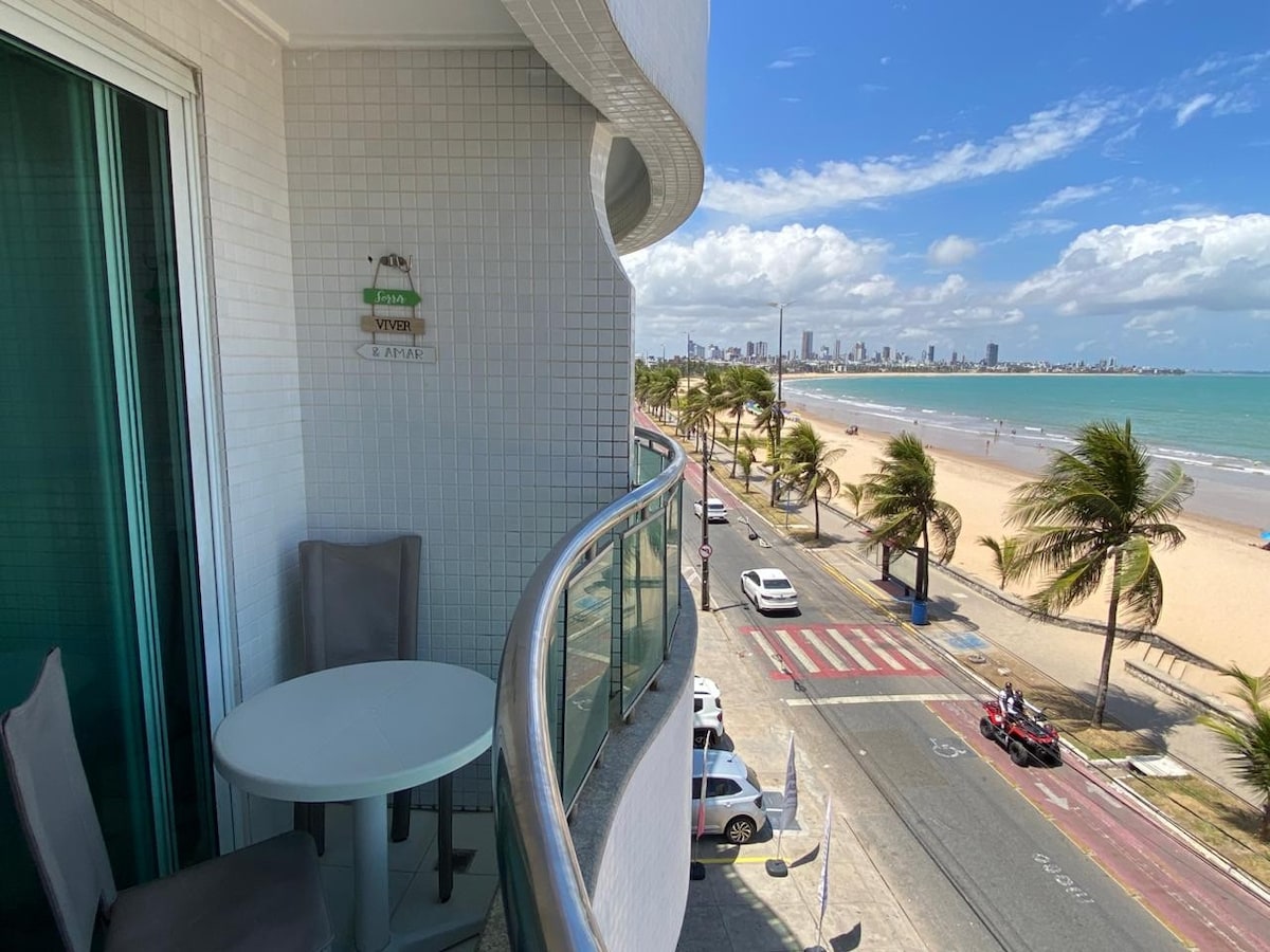 Relaxe neste lindo flat com sua família, você terá uma bela vista mar pela janela do quarto. O flat é muito aconchegante, 02 TV 01 no quarto e outra na sala. O prédio oferece recepção 24h. e uma recepção aconchegante. Você estará próximo de todo o comércio local, pastelaria, bares, restaurantes, sorveterias, lojas, feiras de artesanato, padarias, mercados, shopping, academia e muito mais, de frente mar, tudo isto vc faz caminhando. OBS Em longas estadias, a energia do período poderá ser cobrada.