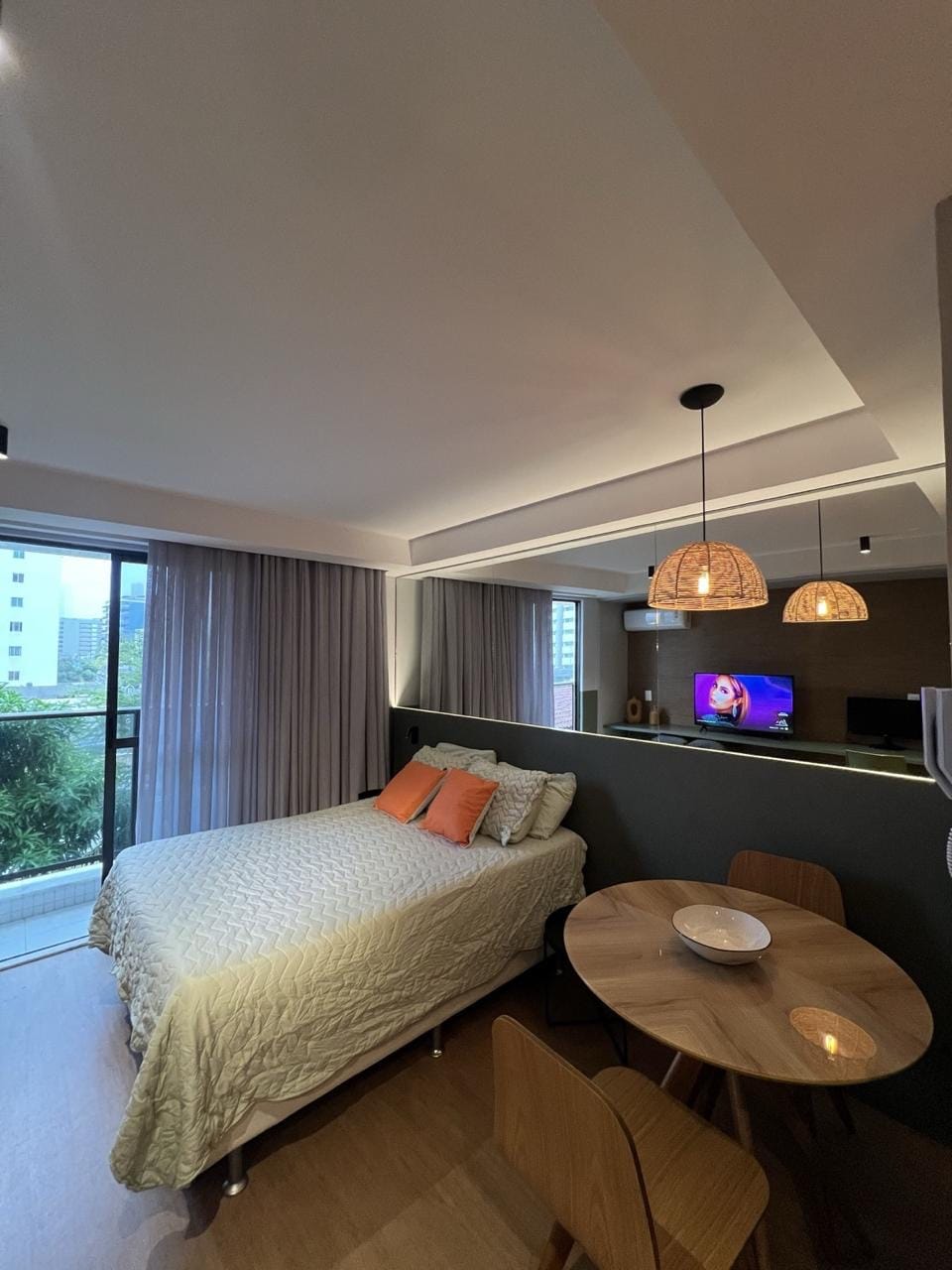 Meu espaço é muito aconchegante localizado no melhor do bairro de manaira próximo aos dois principais shoppings da cidade, padarias, supermercados, farmácias, restaurantes e bares. Fica a 600 metros metros da praia de manaira e perto dos principais pontos turísticos de João Pessoa. Apartamento moderno e super equipado, vista maravilhosa do 18 andar, possui uma varanda acolhedora e espaçosa, sala, cozinha, quarto e banheiro. Com certeza você terá uma excelente estadia!!Será um prazer recebê-lo!!