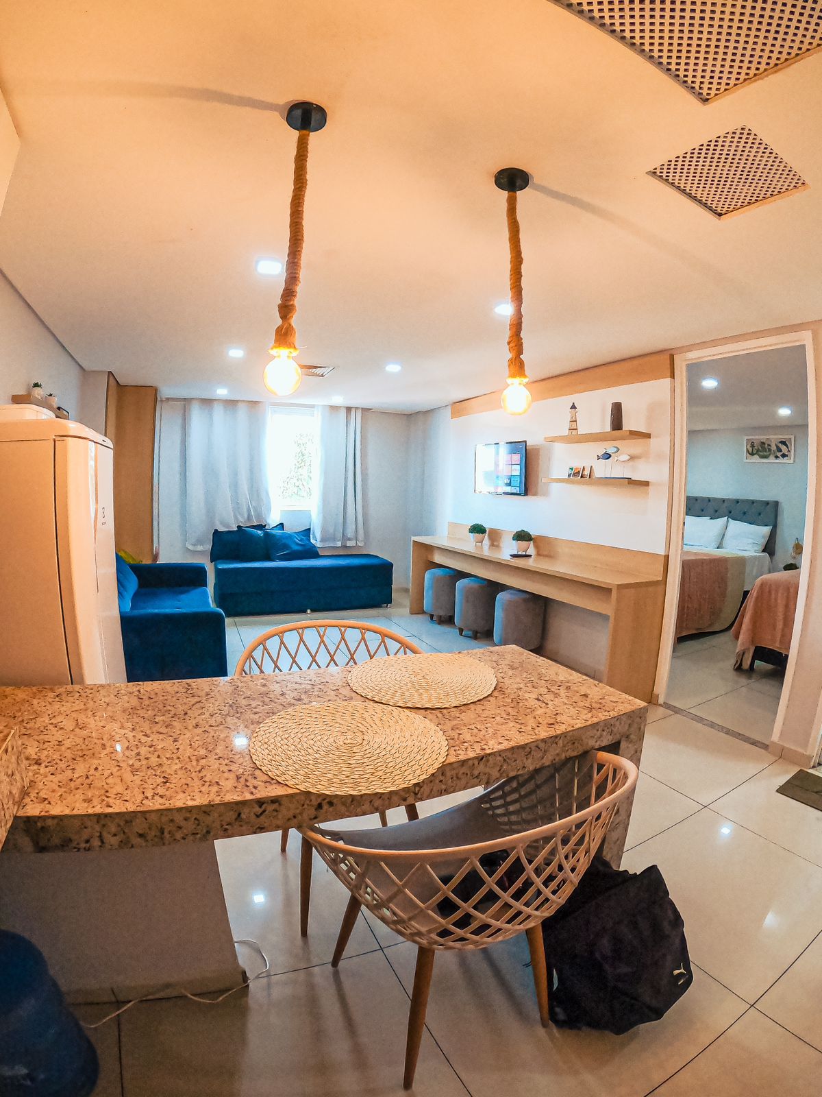 Estúdio mediterrâneo pé na areia em João Pessoa. Com decoração branca e azul e detalhes rústicos que trazem o charme da Grécia para o litoral paraibano, este compacto e aconchegante estudio com vista para o mar, é ideal para casais ou viajantes solo. Um refúgio charmoso, perfeito para relaxar, sem abrir mão do conforto e de uma localização perfeita, próximo a ótimos restaurantes e passeios. Completo e bem equipado também possui área de lazer com piscina, academia, lavanderia e estacionamento.