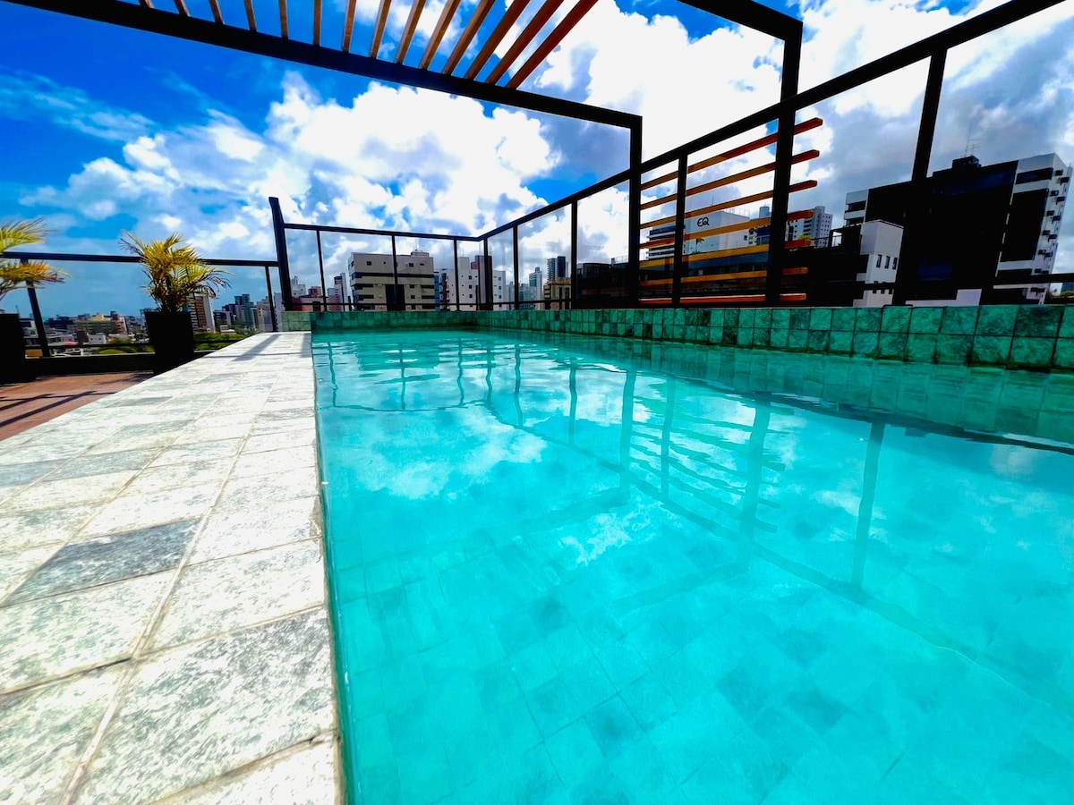 O Paraíso no Bessa - Luxuoso flat com jacuzzi privativa, pé na areia na praia do Bessa. Nossa acomodação é perfeita para quem busca conforto, elegância e uma vista de tirar o fôlego ! Área externa privativa com uma linda jacuzzi particular. Quarto e sala climatizados, cozinha completa, Wi-Fi, Smarts TV sala. O condomínio possui uma piscina incrível na cobertura, academia, sala de jogos, lavanderia e coworking. Localizado perto de restaurantes, bares e com serviço de praia em frente ao prédio.